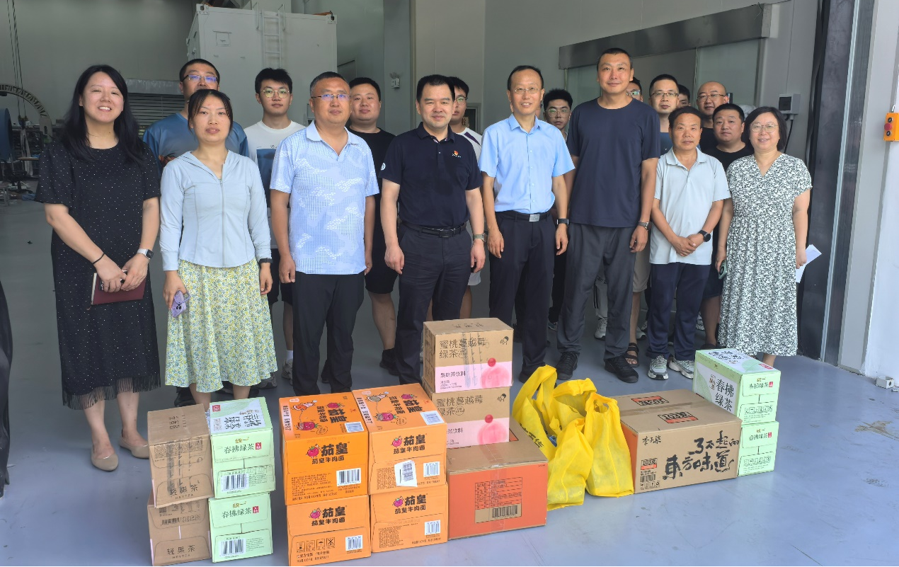 在研究所集中休假期間,為保障多項科研任務如期交付,我所部分科研團隊放棄休假,加班加點堅守在科研一線,奮戰在實驗室和外場。近日,黨委書記、副所長郝偉,副所長邵曉鵬帶領黨群工作處和所務辦公室部分同志深入科研一線開展高溫假期間慰問活動,代表所黨委和所工會向堅守崗位的加班職工送去涼茶、飲料、方便食品等,送去組織的關懷與問候。郝偉和邵曉鵬對科研人員不畏酷暑、堅守崗位的辛勤付出表示慰問和感謝,勉勵大家繼續發揚“西光精神”,確保國家重大科研任務高質量完成,同時叮囑團隊負責人合理安排作息,做好防暑降溫措施。