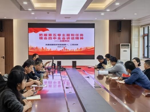 為進一步深化黨員對習近平新時代中國特色社會主義思想的理解,強化保密安全意識,全面貫徹黨的二十屆四中全會精神,11月21日,光譜成像技術實驗室第一、第二黨支部聯合開展“把握第五卷主題和任務,領會四中全會講話精神”主題黨日活動。會議由光譜室第二黨支部黨支部書記馮玉濤書記主持,第一、第二黨支部全體黨員、發展對象、積極分子參會。