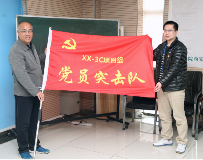 支部大會上謝梅林書記向廣大黨員宣貫主題活動實(shí)施規(guī)劃、口號和目標(biāo),向突擊隊員和先鋒隊隊員提出了明確職責(zé)要求。本次活動的口號:“攻堅克難力踐四個國家,凝心匯智盡展黨員風(fēng)華”,時間從3月25日開始到項(xiàng)目交付結(jié)束,號召大家在科研實(shí)踐活動中對標(biāo)中國科學(xué)院對全體科研工作者“四個國家”的定位和要求,讓黨旗在科研一線高高飄揚(yáng)。為對本次活動進(jìn)行廣泛宣傳和對參與隊員進(jìn)行精神激勵,以及自覺接受廣大黨員群眾的督導(dǎo),兩個項(xiàng)目的調(diào)試現(xiàn)場和研究室宣傳欄均進(jìn)行了黨旗、隊旗和宣傳標(biāo)語布置。?